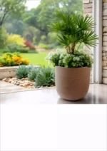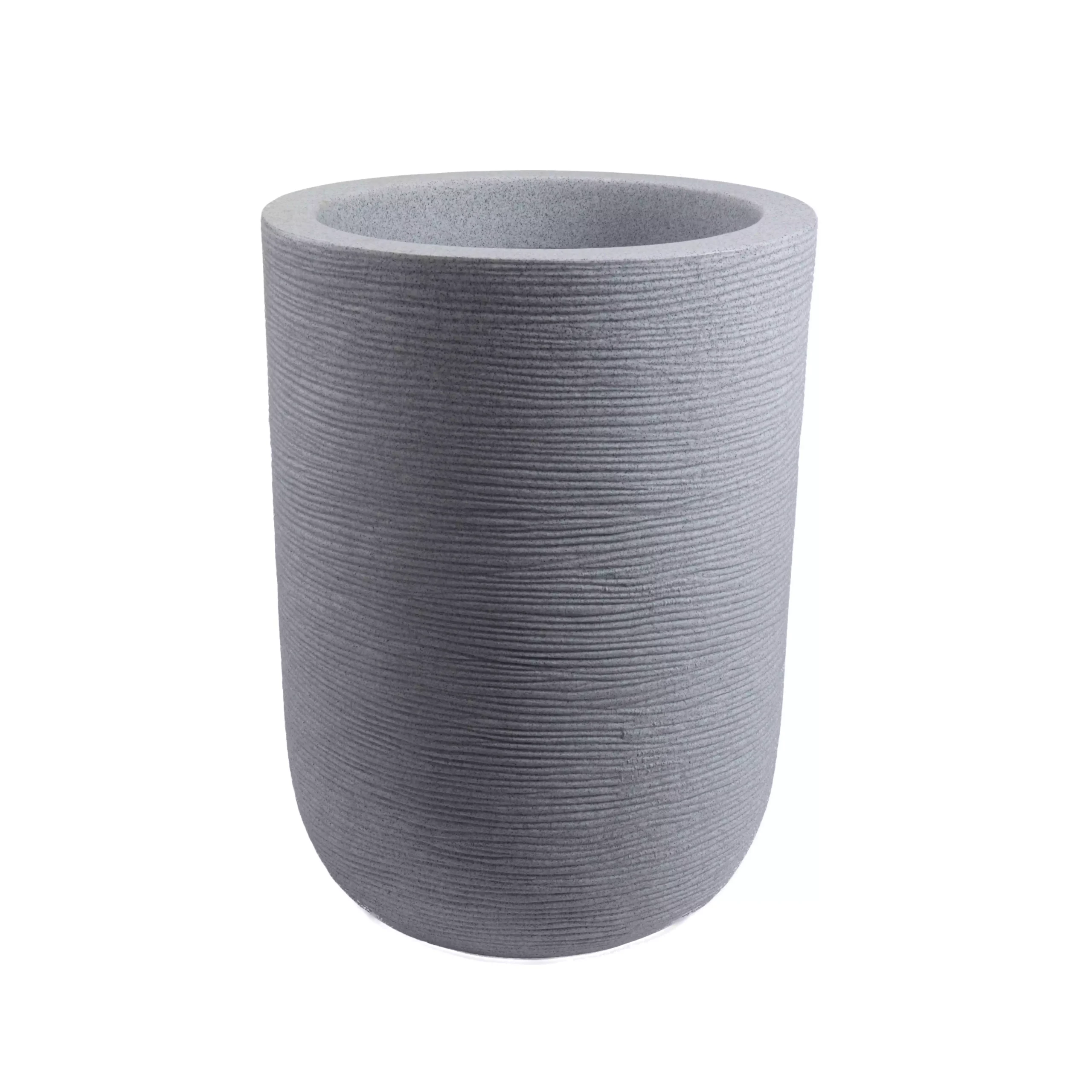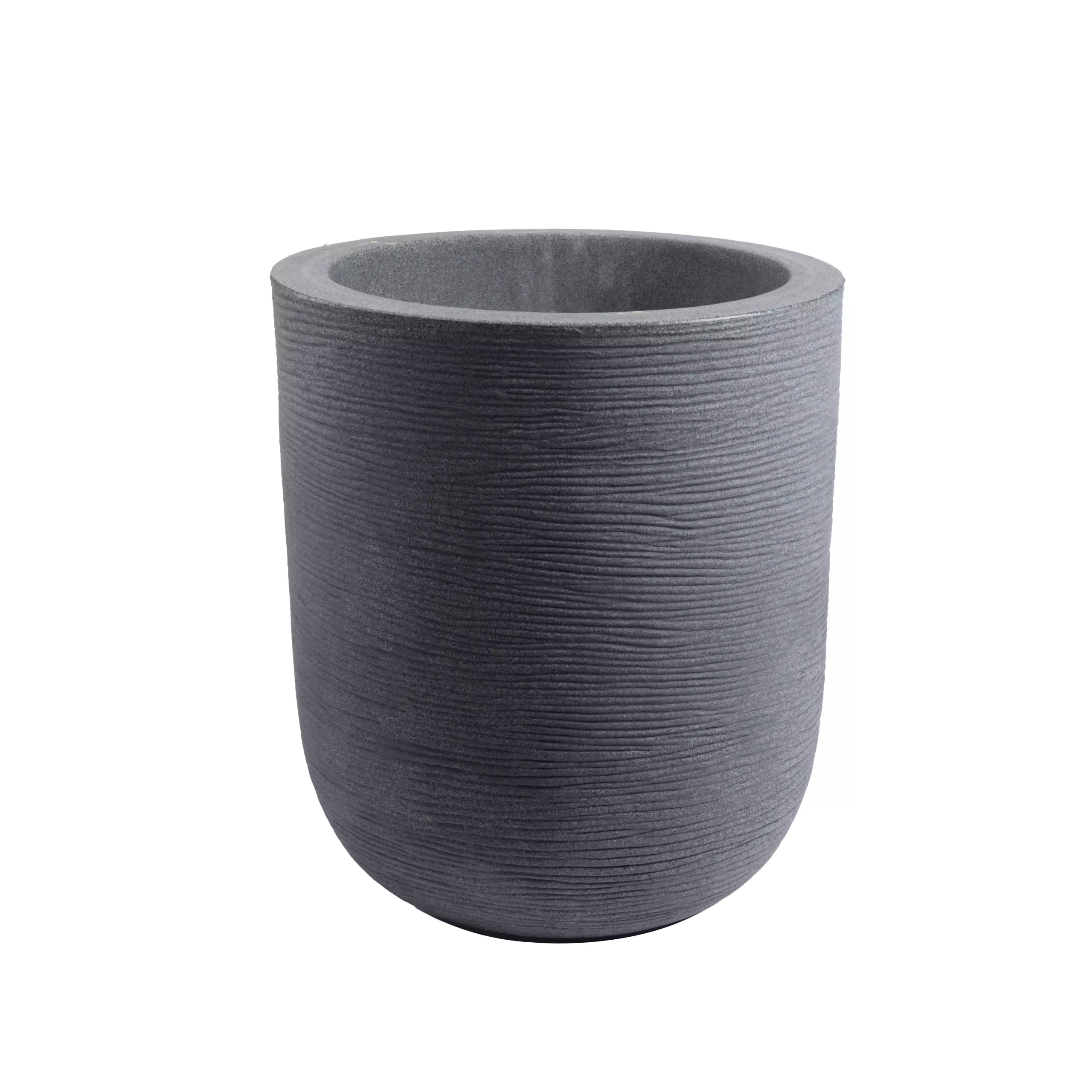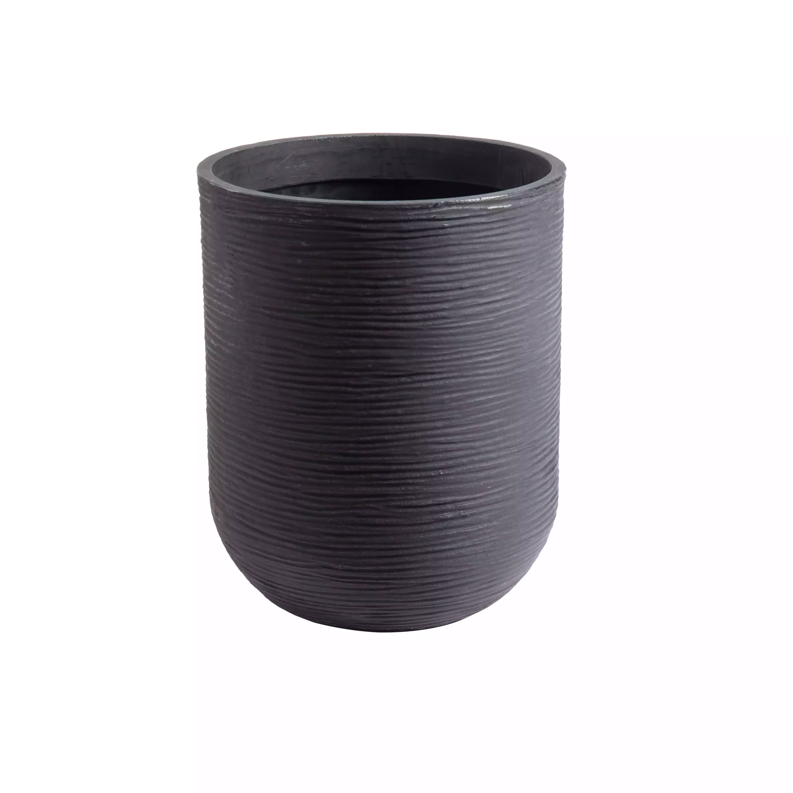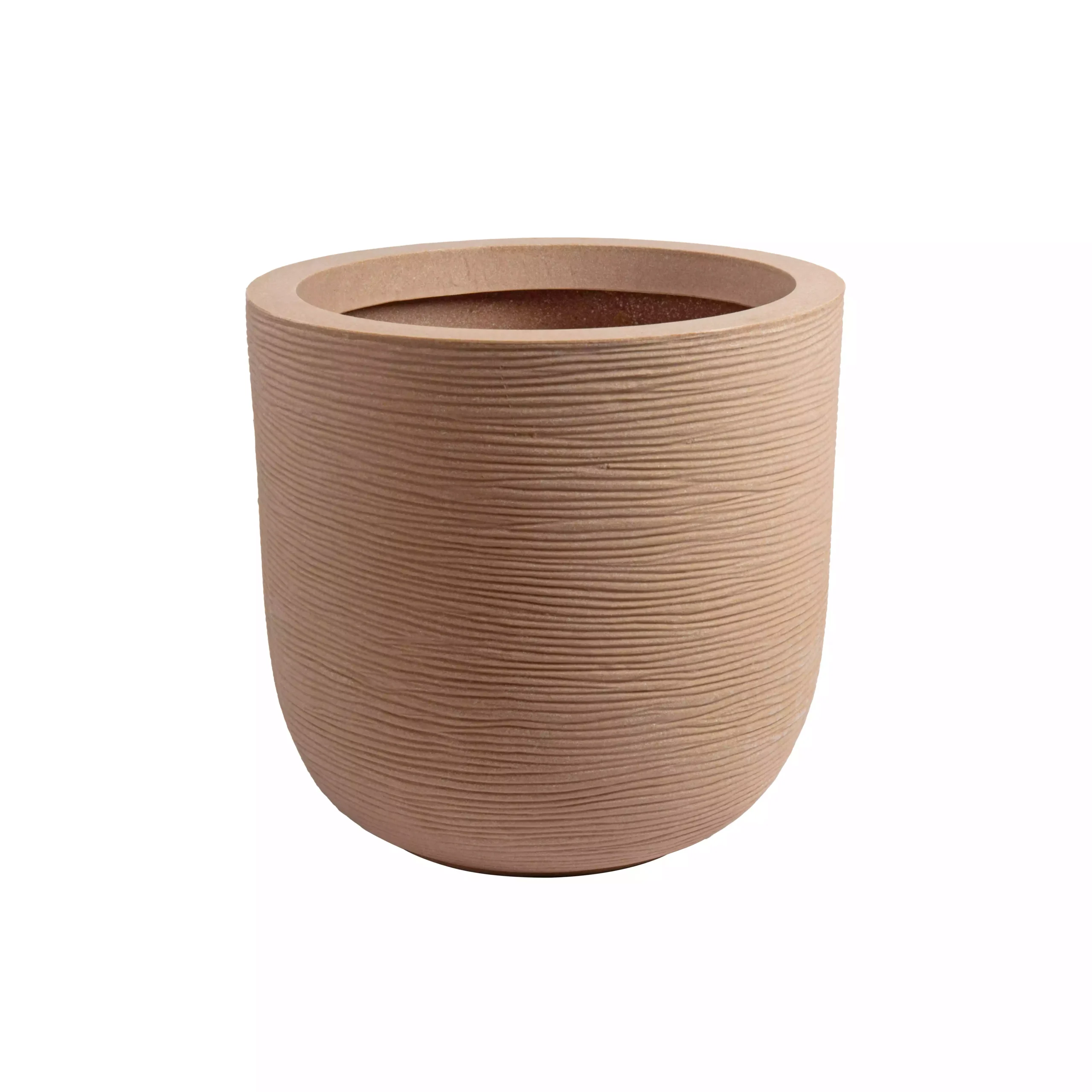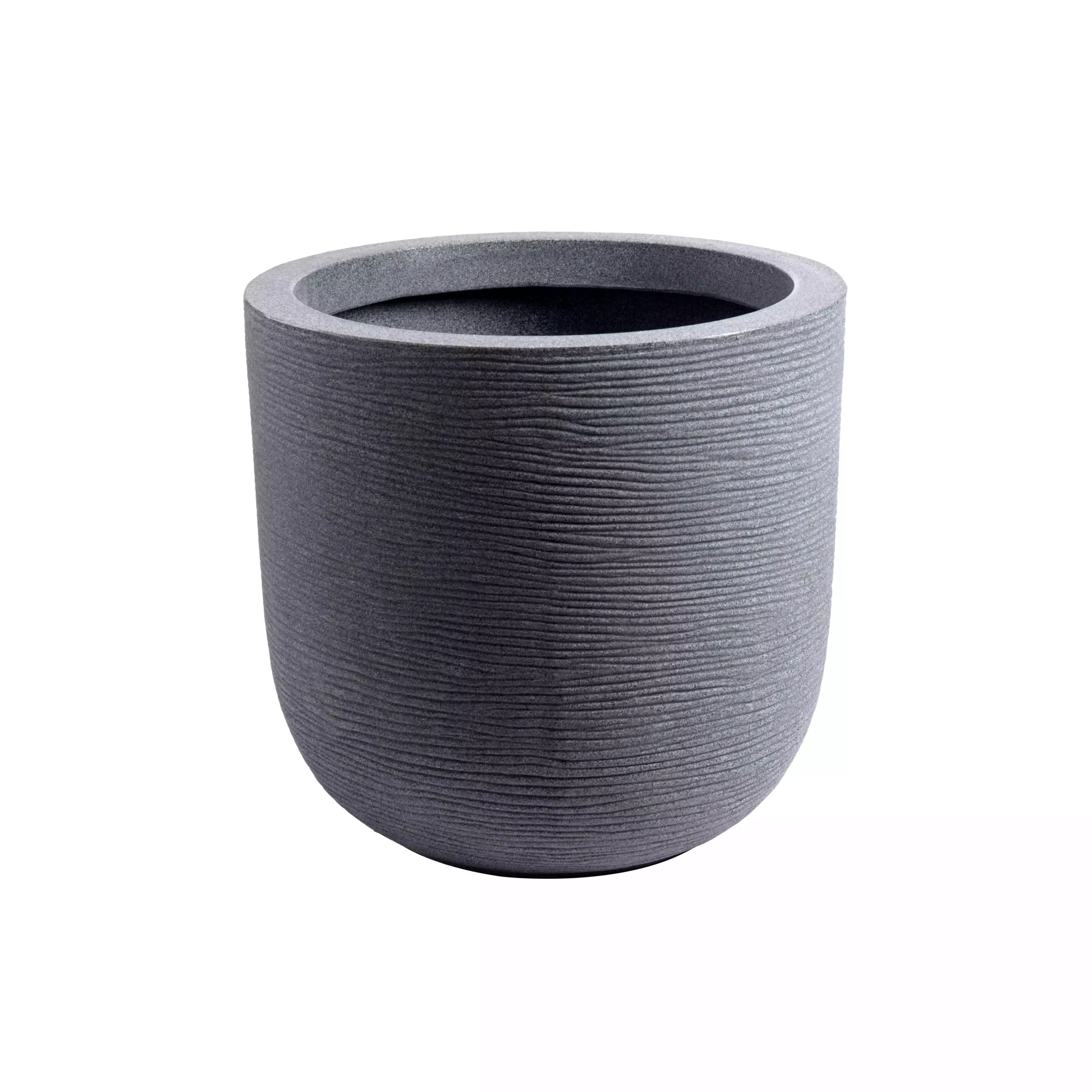 A sleek, rounded planter with smooth contours, ideal for modern homes. Available in multiple sizes (16″, 20″, 24″ diameters) with height variations to suit any indoor plant style.