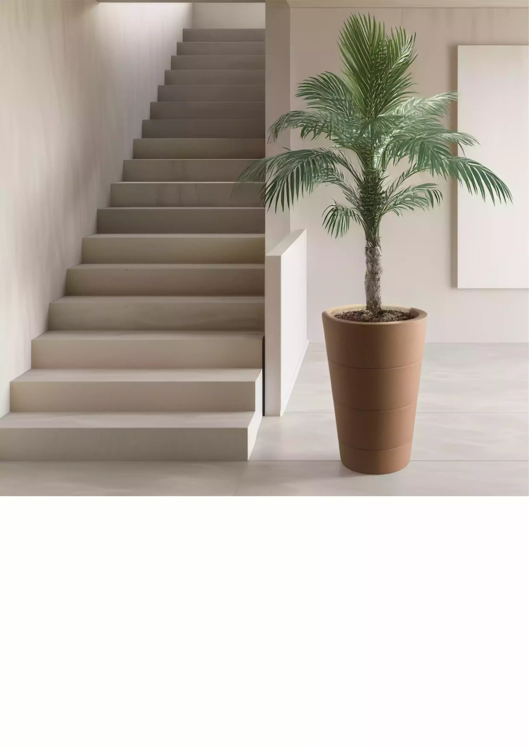 Modern, minimalistic planter with a clean design, perfect for outdoor or large interior spaces. Height: 21″, Diameter: 14″.
