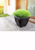Broad and structured, this square pot features elegant detailing for a refined appearance. Height: 14″, Diameter: 17.5″.